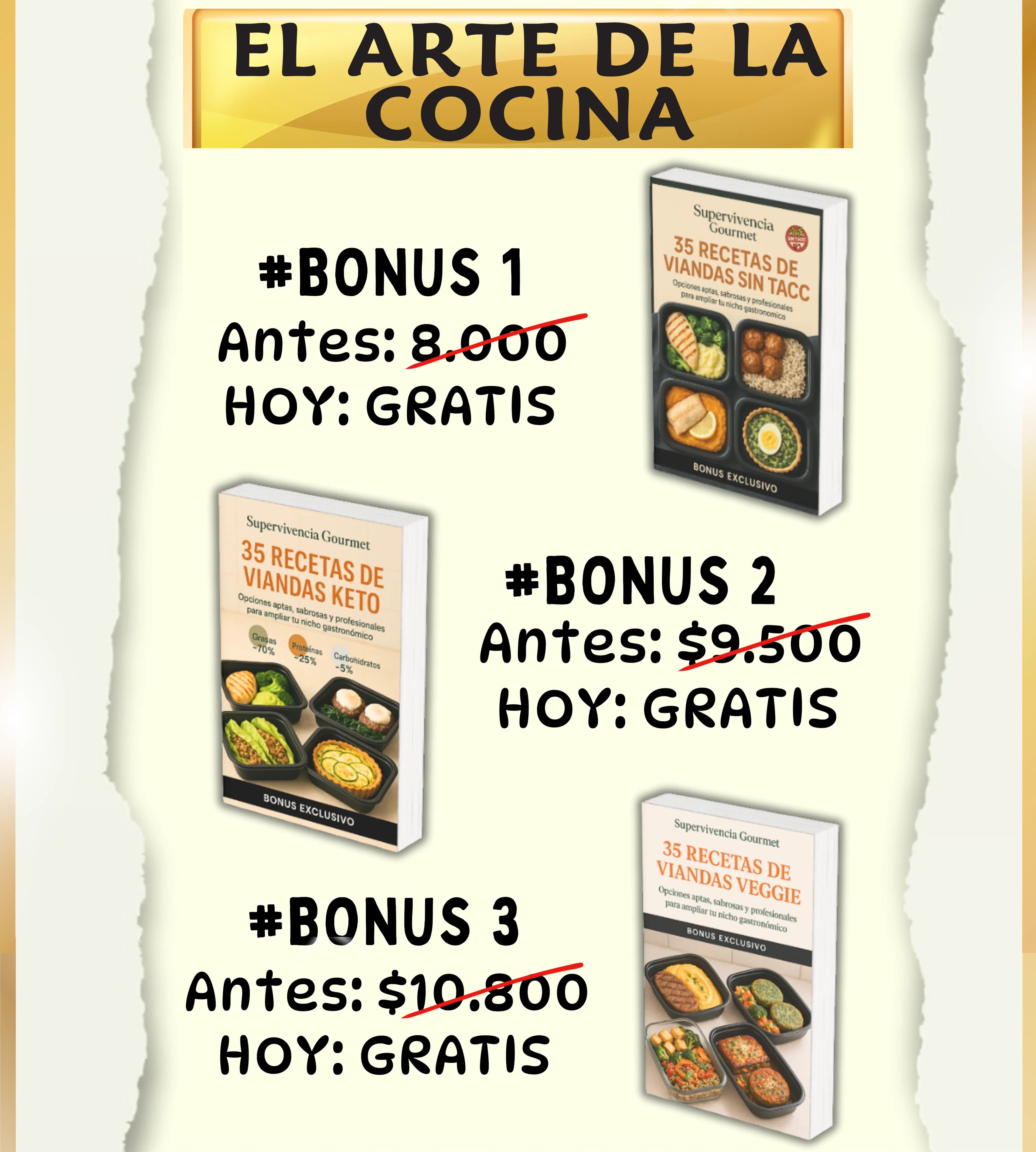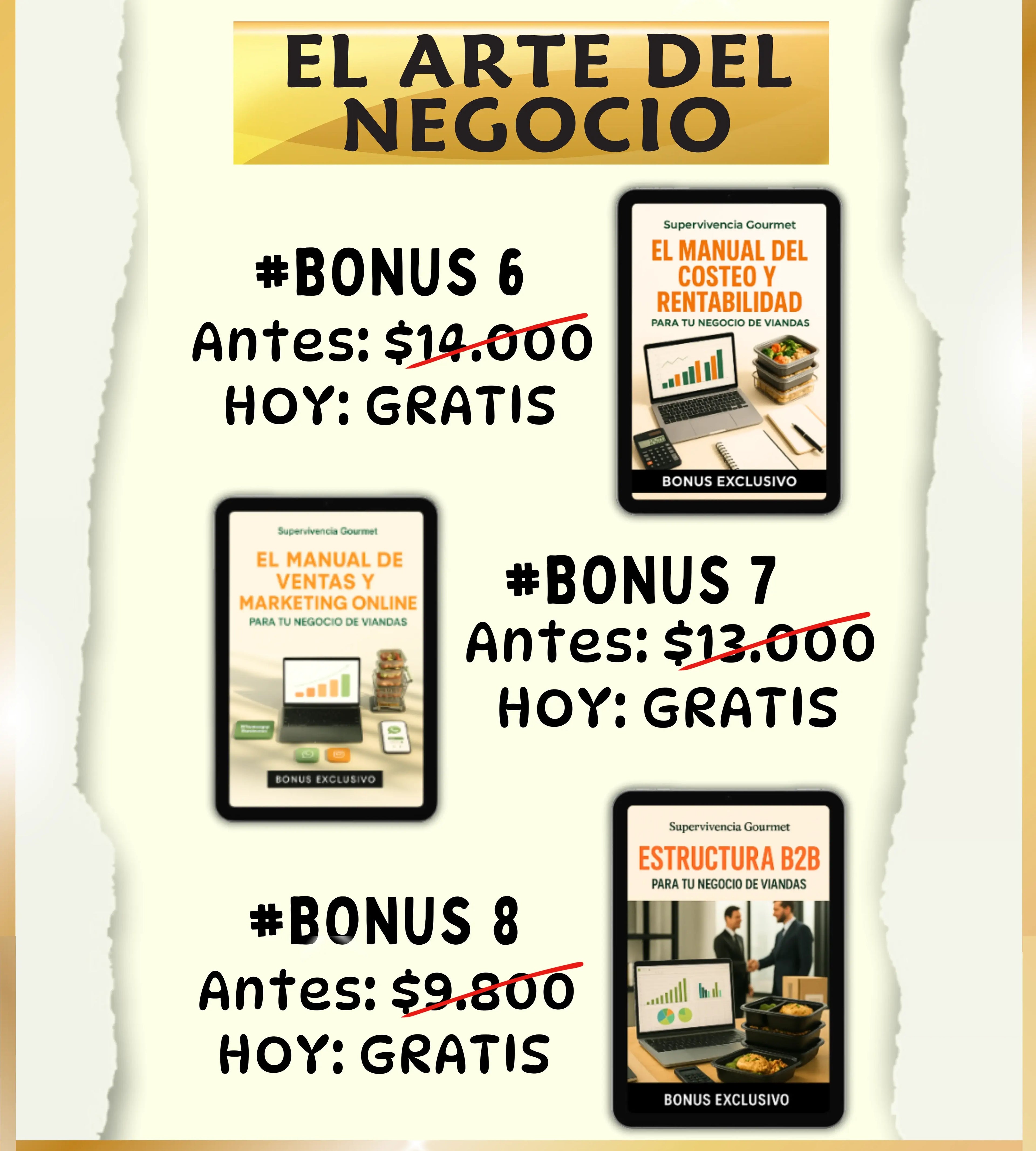 3 BONUS DE NEGOCIOS + 5 RECETARIOS (+200 RECETAS EN TOTAL)